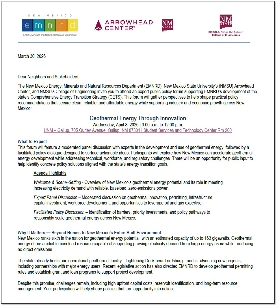 Travel support is available for Community members participating in EMNRD CETS Phase II Workshops around the state of New Mexico. Participants can apply to receive $250 participation stipend to offset travel costs to attend community focused workshops. Funds will be issued after the event, please be prepared to cover up-front travel costs for your participation in this event. Review the conditions and eligibility at the following link below.